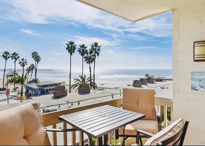 Panoramic Ocean View Beachfront Condo Oceanside spacieux est situé à Oceanside à 15 minutes à pied du Quai d'Oceanside. Il vous propose un jacuzzi et un sauna. Le Musée californien du surf se trouve dans les environs de l'appartement.